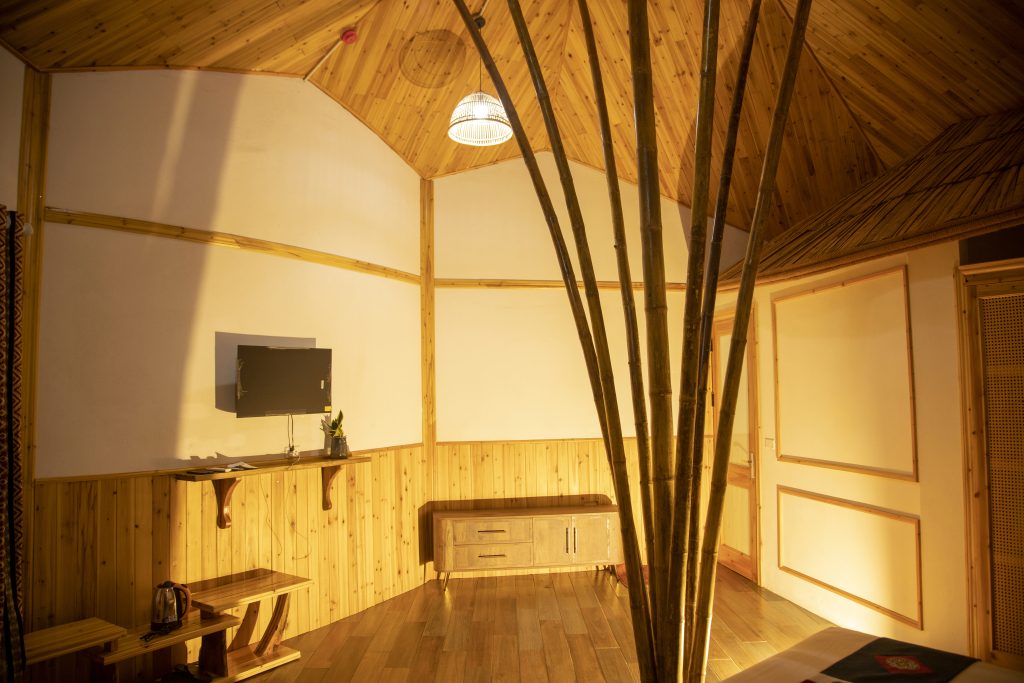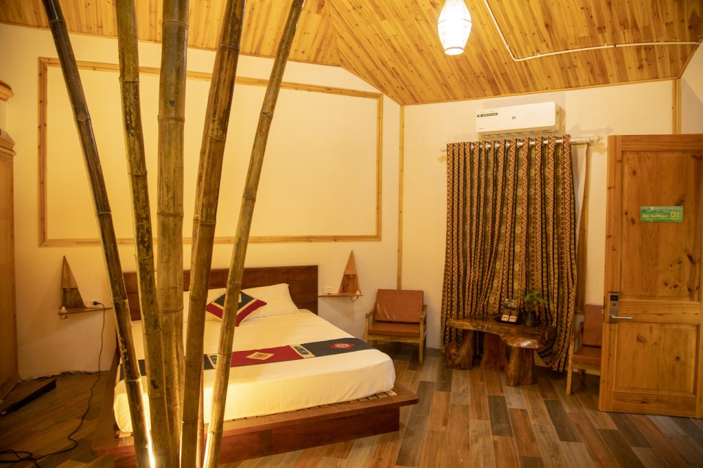 Long Cốc Ecolodge sở hữu 14 phòng nghỉ riêng tư và một phòng cộng đồng rộng rãi. Nội thất gỗ cao cấp hòa quyện cùng thiên nhiên, tạo nên không gian vừa ấm cúng vừa thanh lịch, mang lại cho du khách cảm giác thư thái và sang trọng.